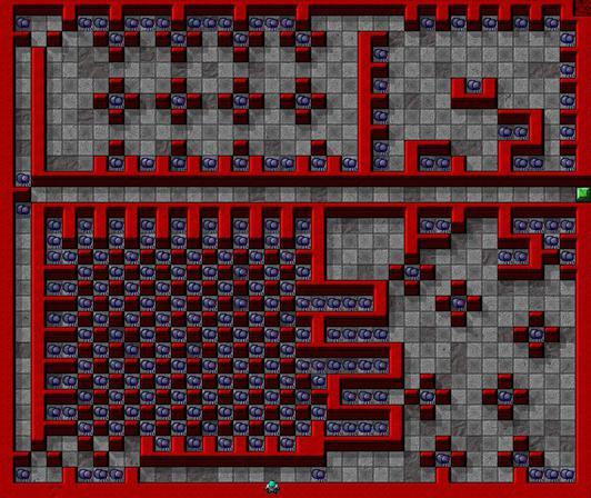 Second Floor: 2S1E, mostly just mean a whole lot of walking around after you've done the interesting part of the puzzle. (That's especially true since the latter isn't high-scoreable: someone has already come in from the entrance with the red gate, thereby registering a one-move solution. Other rooms have conquer tokens near the "